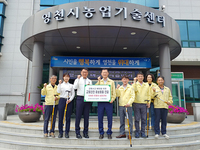 영천시(시장 최기문)는 지난 21일 영천시농업기술센터에서 영천경찰서(서장 최준영) 김종호 경비교통과장 외 관계 공무원 6명이 참석한 가운데 안전용품인 야광 반사지 부착 효도지팡이 600개를 영천경찰서에 전달했다.이 홍보물은 농업기술센터에서는 농기계 순회수리 및 교육 시
