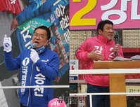 ‘반야월시장을 점령하라.’대구 동구을 여야 후보들이 4.15 총선 마지막 주말인 11일 온종일 반야월시장에서 표밭갈이에 열중하며 막판 부동층과 지지세 확산에 나섰다.더불어민주당 이승천 후보와 미래통합당 강대식 후보, 무소속 송영선 후보 등은 이날 반야월시장 장날을 맞아