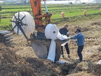 경주시는 논에서 밭작물을 안전하게 재배하기 위해 농촌진흥청에 개발한 무굴착 땅속배수 기술 신기술 시범사업을 산내면과 천북면에 4ha 규모로 추진한다.이번에 농가에 보급되는 무굴착 땅속배수 기술은 굴삭기에 땅속배수관 매설기를 장착해 땅을 굴착하지 않고 주행과 동시에 땅속