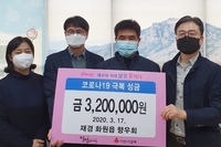 재경화원읍향우회(회장 배재훈)가 17일 달성군 화원읍 행정복지센터에 코로나19 극복을 위한 성금 320만원을 기탁했다.이날 배재훈 회장은 “모두가 힘이 들지만 대구는 얼마나 힘이 들겠느냐”며 “멀리서나마 달성 화원에 있는 주민들에게 도움을 드리고 싶어 회원들과 함께 성
