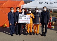 대구시교육연수원(원장 김승한)은 지난 12일 대구 달서구 옛 두류정수장 부지에 집결한 119구급대원에게 위문품(200만원 상당)을 전달했다.이번 위문품은 코로나19 환자 이송에 밤낮 없이 헌신적으로 힘 쏟고 있는 119구급대원을 응원하고 조금이나마 힘을 보태기 위해 자