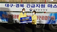 대구시가 코로나19로 부족한 마스크를 26일 오후 5시부터 각 구·군에 배부되기 시작했다.이번에 배부될 마스크는 식약처에서 수령한 마스크 90만장과 대구시에서 이미 확보한 100만장, 총 190만장을 배부한다.배부는 각 구·군의 이장·통장을 통해 배부되며 취약