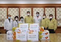 장경식 경북도의회 의장 및 김희수·이재도 의원이 25일 코로나19 확진자 치료 전담병원인 포항의료원을 찾아 종사자를 격려하고 격려품을 전달했다. 이번 방문은 대구시와 함께 전국에서 가장 많은 코로나 확진자가 발생하고 있는 시급한 상황에서 온 몸을 던져 근무하고 있는 종