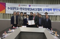 수성대학교(총장 김선순)와 (사)한국장애인MICE협회(이사장 심만섭)는 장애인 교육과 고용 등을 위한 산학협약을 31일 본관 회의실에서 가졌다. 양 기관은 또 학생들의 현장실습과 교육시설 활용 등에서 서로 협력하기로 했다.