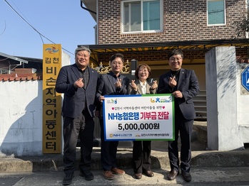 NH농협은행 경북본부(본부장 김진욱)는 13일 설 명절을 맞아 김천시 지역아동센터를 방문해 기부금 전달식을 진행했다.이번 전달식에는 김진욱 본부장과 경북도의회 조용진 교육위원회 부위원장, 이정미 김천지역아동센터협의회장 등이 참석했으며 기부금 500만원은 김천 소재 지역