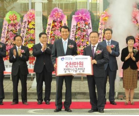 구미시장학재단은 지난 2일 부산은행 구미지점 개점식에서 성세환 부산은행 회장 및 임원들이 참석한 가운데 장학기금 2천만원을 기탁받는 뜻 깊은 자리를 가졌다.