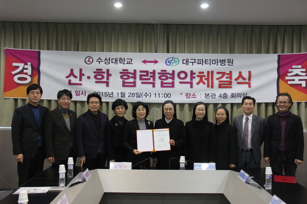 수성대학교(총장 김선순)와 대구파티마병원(병원장 박진미)은 28일 ‘지역사회 의료복지 향상을 위한 공동 관심사 연구와 학생들의 현장실습과 취업정보 제공’ 등을 위한 산학협약을 대학 본관 회의실에서 맺었다.
