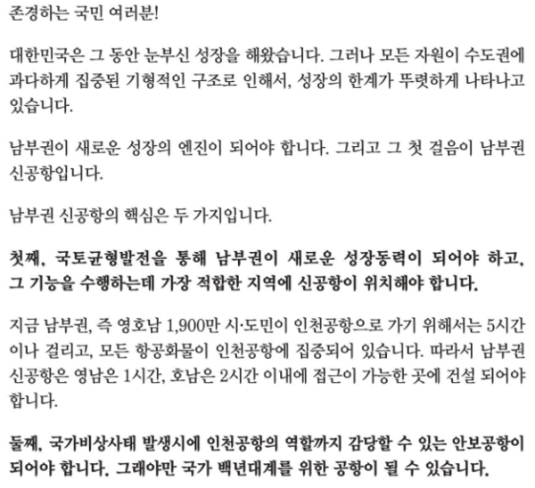 남부권 신공항은 대한민국 백년대계입니다