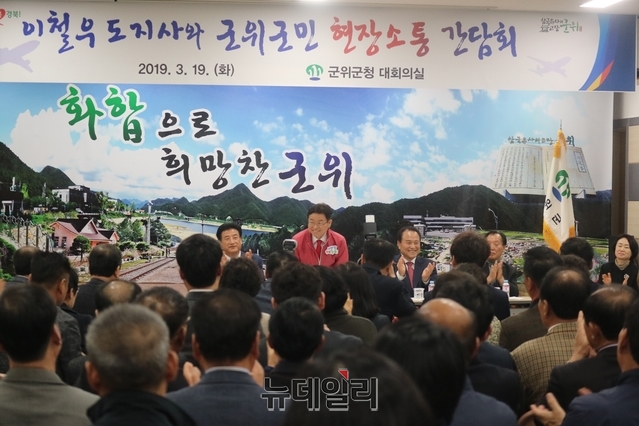경상북도는 19일 새바람 행복경북의 도정방향을 도민들과 공유하고 지역발전의 고민을 함께 나누기 위해 삼국유사의 고장 군위군을 찾아가 현장 소통 간담회를 가졌다.