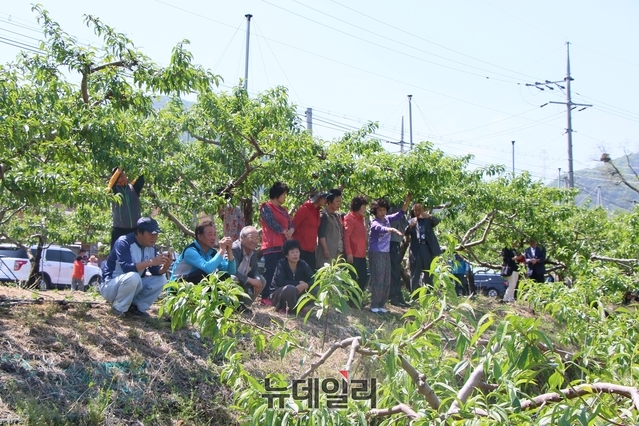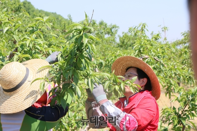 복숭아 적과작업하며 구슬땀…과수농가 애로사항 청취