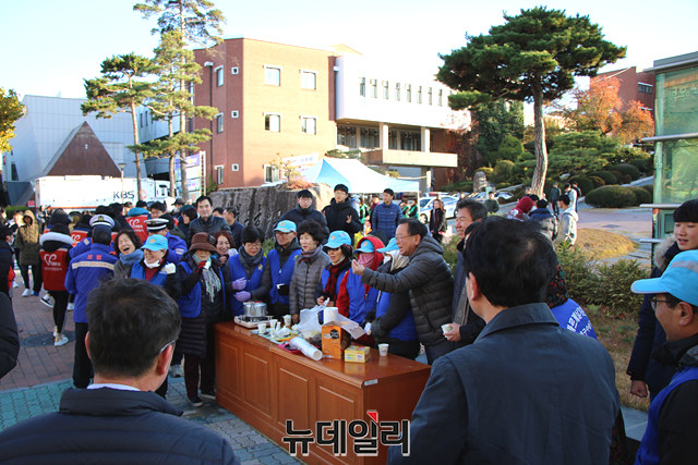 이날 경북고에는 김부겸 전 행정안전부 장관과 김대권 수성구청장이 수험생들을 응원하기 위해 거리 응원을 펼쳤다.