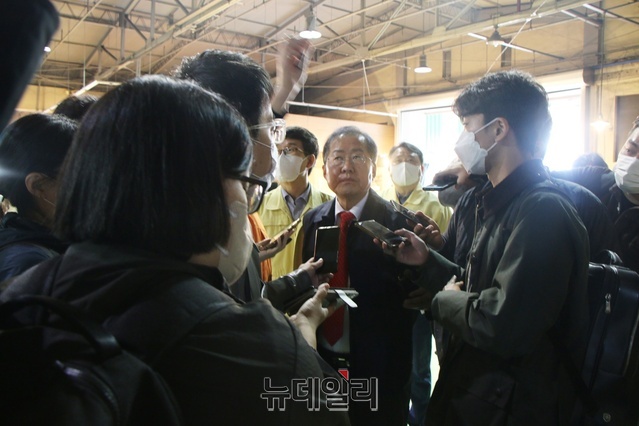 홍준표 대구시장이 지난 25일 저녁에 발생한 대구 북구 농수산물도매시장 화재현장을 찾았다.