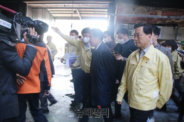 [포토] 홍준표 대구시장, 농수산물도매시장 화재 현장 방문