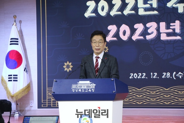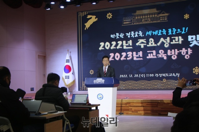 ‘따뜻한 경북교육, 세계교육 표준으로 도약’을 내건 임종식 경북교육감이 28일 오전 교육청 웅비관에서 2023년 새해맞이 기자회견을 갖고 올 한해 주요 성과와 2023년 새해 교육 방향을 상세히 설명했다.임 교육감은 기자회견에서 2023년 계묘년(癸卯年) 코로나19로 위축된 교육활동을 온전히 회복하고 흔들림없는 미래 교육 정책을 위해 4가지 핵심 추진과제를 실천해 29만 명 학생이 세계무대에서 꿈을 이룰 수 있는 높은 수준의 교육활동을 펼칠 것이라고 강조했다.