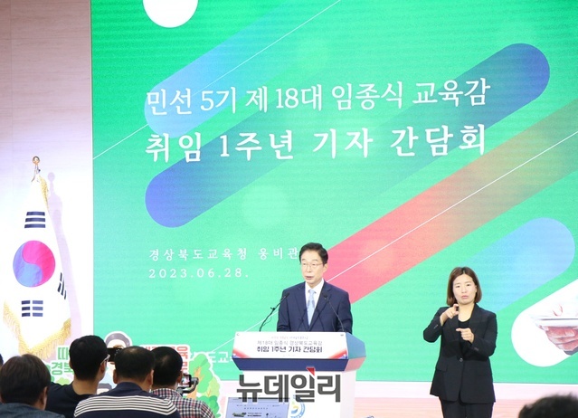“따뜻한 경북교육(K-edu)이 대한민국을 넘어 세계교육 표준으로 도약할 수 있도록 4만 5천여 교육가족과 함께 힘차게 추진해 나가겠습니다.”임종식 경북교육감은 28일 웅비관에서 출입기자를 대상으로‘1년간 경북교육의 주요 성과 및 향후 추진 방향’을 주제로 민선 5기, 취임 1주년 기자 간담회를 가졌다.이날 취임 1주년 기자 간담회는 지난 1년간 경북교육을 되돌아보고 주요 성과에 대한 설명과 세계교육 표준을 위한 경북교육 주요 정책과 추진 방향 설명, 출입기자단의 질의․ 응답 순으로 진행됐다.