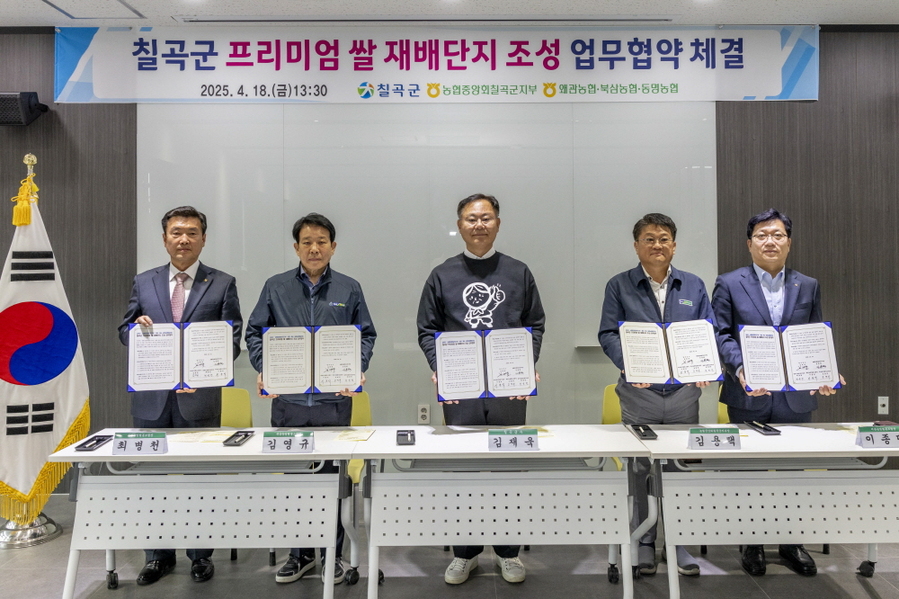 경북 칠곡군은 농협중앙회칠곡군지부와 왜관·북삼·동명 지역농업협동조합과 공동으로 성공적인 프리미엄 쌀 재배단지 조성을 위한 업무협약(MOU·사진)을 체결했다고 21일 밝혔다.칠곡군 프리미엄 쌀 재배단지 조성사업은 20ha의 재배단지에서 40호 농가가 참여해 고품질의 미호쌀을 생산한다.농업기술센터에서는 재배기술 교육, 포장관리 지도, 수확 후 DNA·품위·성분분석과 소포장재 디자인 제작 등을 지원하고 농협에서는 농자재 지원, 쌀 수매 및 유통·판매를 전담한다.협약에 따라 참여단체는 ▷ 프리미엄 쌀 생산을 위한 기술 지도 및 자재 지원 ▷ 프리미엄 쌀 포장재(소포장, 기능성) 개발 및 제작 ▷ 프리미엄 쌀 수매 및 브랜드 활성화를 위한 공동 홍보·마케팅을 공동으로 추진한다.이를 위해 지난 3월에는 행정, 농협, 농민 등이 함께 일본의 쌀 산업 전반을 견학했다.칠곡군은 연수에 참가한 전문가들과 함께 실천 전략을 구체화했다. 농민은 고품질 쌀을 생산하고, 농협은 유통과 판로를 구축하며 행정은 기술지원 및 소포장 마케팅으로 칠곡 프리미엄 쌀 브랜드화 협력체계를 구축할 방침이다.