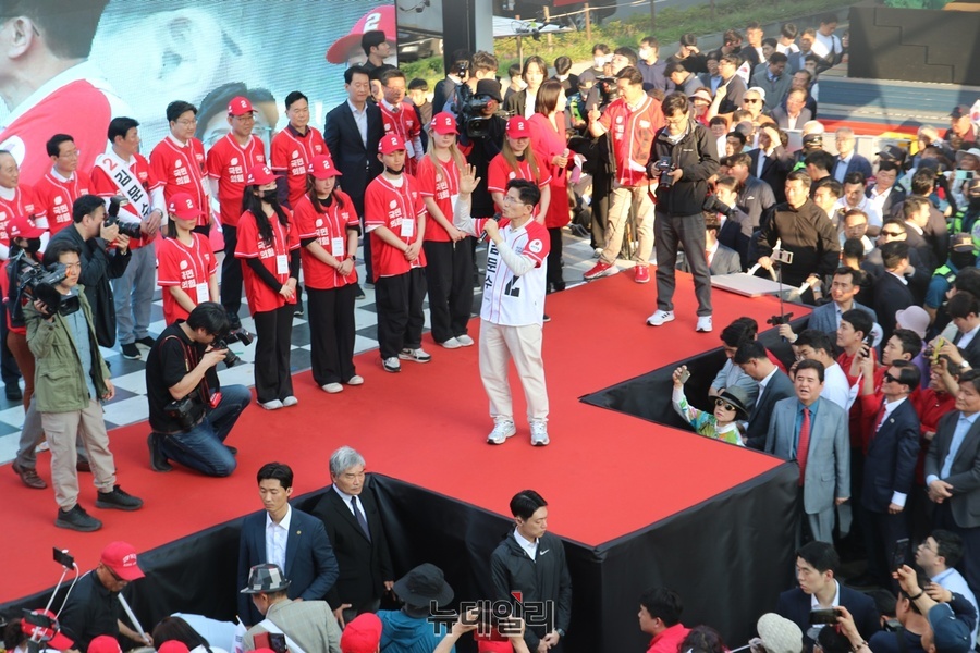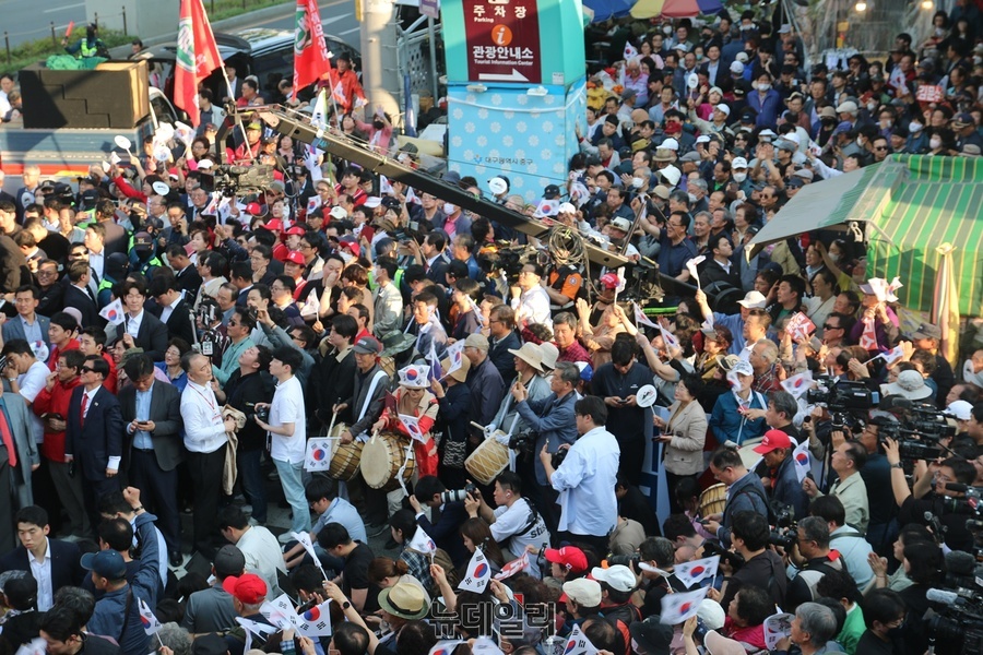 대선 선거 운동 첫날인 12일 김문수 국민의힘 대통령 후보가 보수의 상징인 대구 서문시장을 찾아 대구·경북(TK)민을 상대로 압도적 승리를 위한 지지를 호소했다.이날 서문시장에는 TK 시도민들과 상인들로 발 디딜 틈 없이 빼곡히 구름 인파가 몰려들었다.특히 대구·경북에서 주호영 의원, 추경호 의원, 권영진 의원, 강대식 의원 등 TK 의원 상당수가 참석해 국민의힘 대선 후보 선출 과정에서 빚어진 갈등을 씻어내는 모습을 연출했다.이날 시도민들은 김문수 후보가 연단에 오르자 “대통령, 김문수”를 연호했고 김문수 후보도 손하트를 그리며 TK에 대한 애정을 숨기지 않았다.
