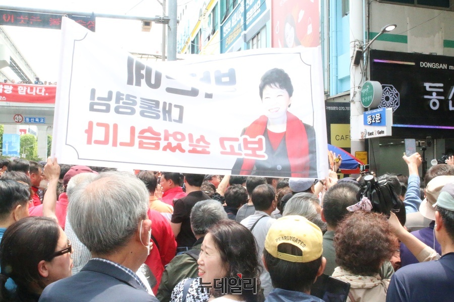 박근혜 전 대통령이 31일 오후 1시 대구 보수의 상징인 서문시장을 찾아 상인들과 만나고 국민의힘 김문수 후보 지원에 나섰다.박 전 대통령은 이날 구름인파가 모인 가운데 30여분 정도 서문시장을 돌며 상인들과 시민들에게 환한 얼굴로 인사를 나눴다.이날 서문시장 입구부터 박 전 대통령을 보려는 시민들로 발디딜 틈이몰려 들어 박 전 대통령에 대한 향수가 여전하다는 것을 실감하는 자리가 됐다.