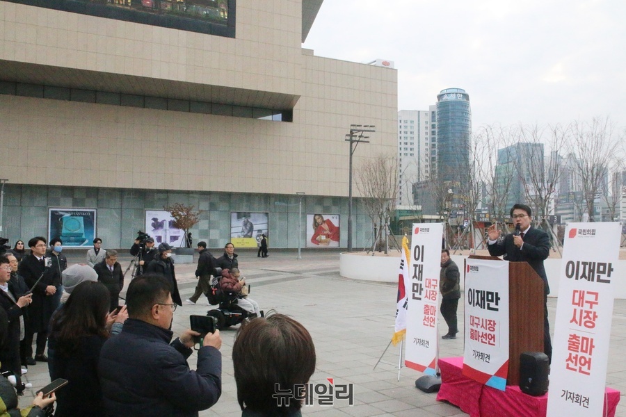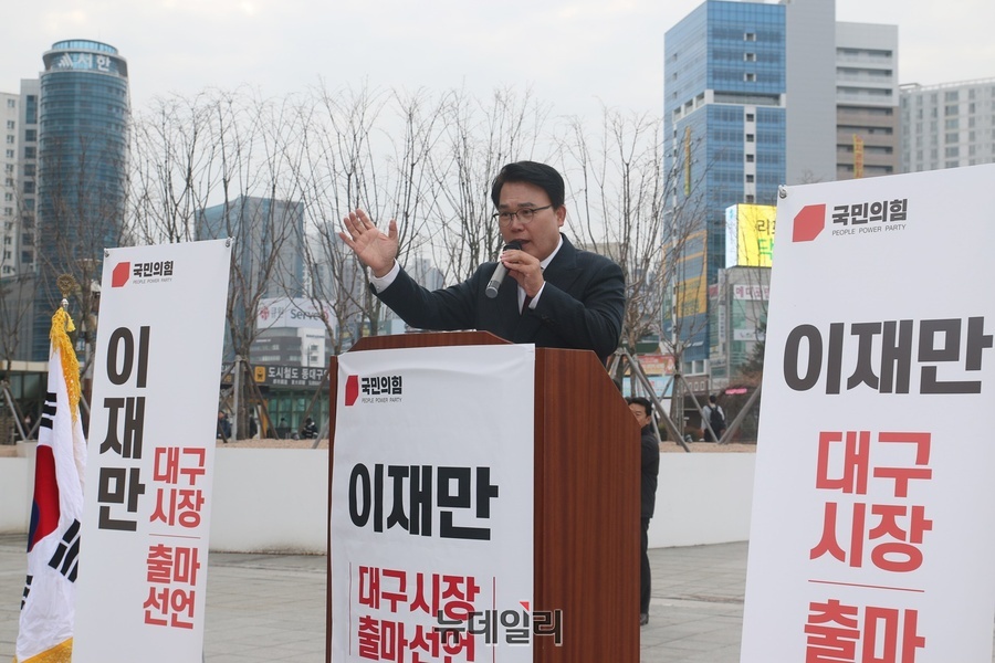 16일 동대구역 박정희광장에서 국민의힘 이재만 전 동구청장이 대구시장 선거 출마를 선언하며 “세 번째이자 마지막 도전”이라고 공식 출마를 선언했다.